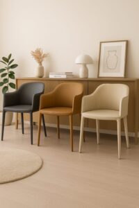 金屬烤漆椅腳線條俐落,展現結構美學,穩重中帶出輕盈氣息。